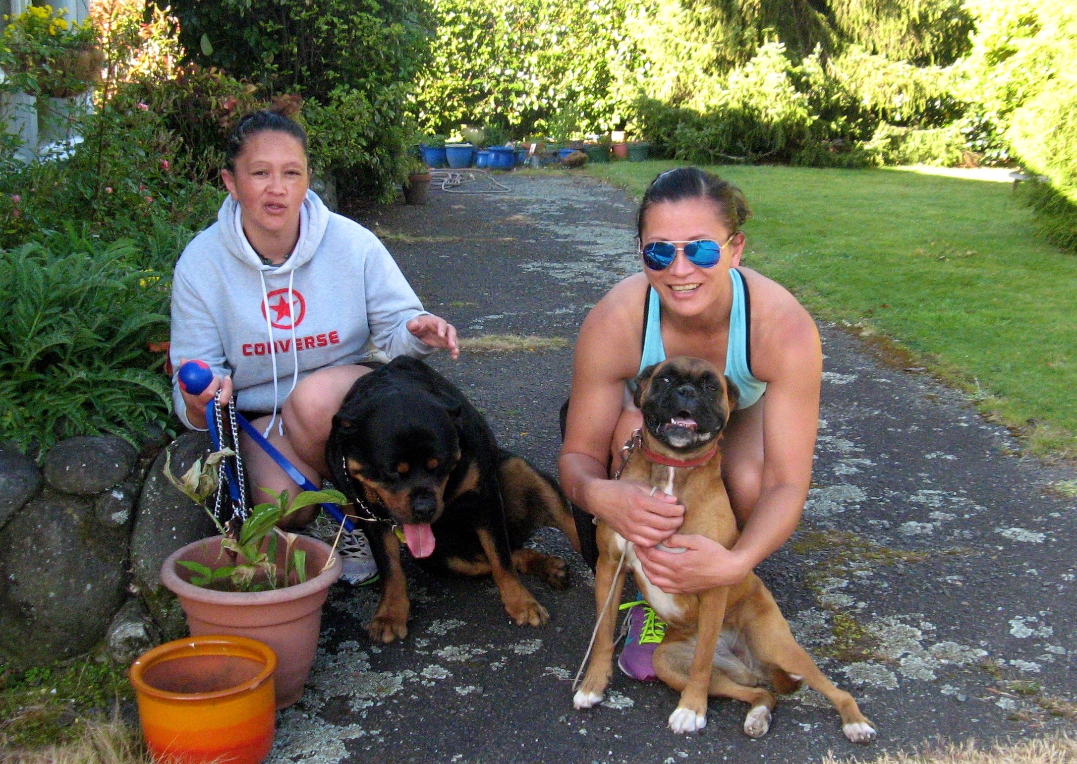 Mary and Muffy were on their regular fitness circuit lead by Sonny (the gentle giant – just look above at his welcoming smile…) on their daily constitutional power walk speeding past TRM around the Tongariro River Trail. But Pumpkin was looking so neglected and putting on such a pathetic dribbling act, they offered to take her with them. What wonderful folk.
