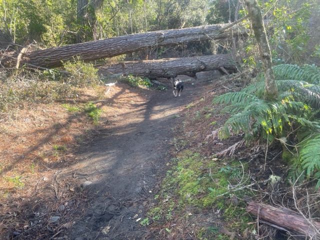 Yesterday we checked out the Poutu Pool TLB access from the Blue Pool road – about 9 km south of Turangi. The photos illustrate the problems. During the storms in January/February, three mature pines were blown across the walking access track. The severe wind dumped these huge old wilding pines which soared above the surrounding older native bush. Now you need to be more agile than me and much younger to clamber over the fallen trunks and wade the new stream that is steadily eroding the original track along the banks. You have been warned…