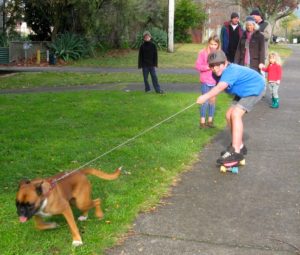No way!. After only a couple of days Pumpkin – being female – was leading him and showing off her tricks – like how they always open the door if you bark long enough.