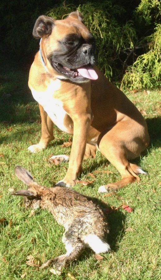 Every morning she does a frantic patrol around the boundary lawns hoping the rabbits are busy feeding.