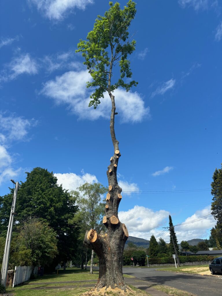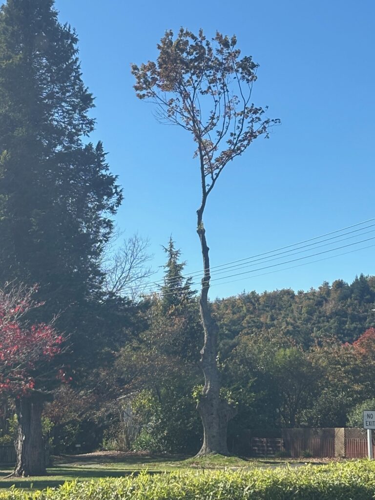 With local council elections only one week away, we cannot resist such a convenient opportunity to remind voters about Toe-Paw council’s response after trying to destroy a protected Red Oak tree on Taupahi Road. The unauthorised Council vandals demolition gang arrived without any prior warning on 16 November, 2024, over ten months ago, determined to demolish the tree. They were stopped just in time to leave the bare bones of a majestic oak for all to witness how Turangi’s trees have been abused. i.e This is not the only reported loss of mature trees on Council land.