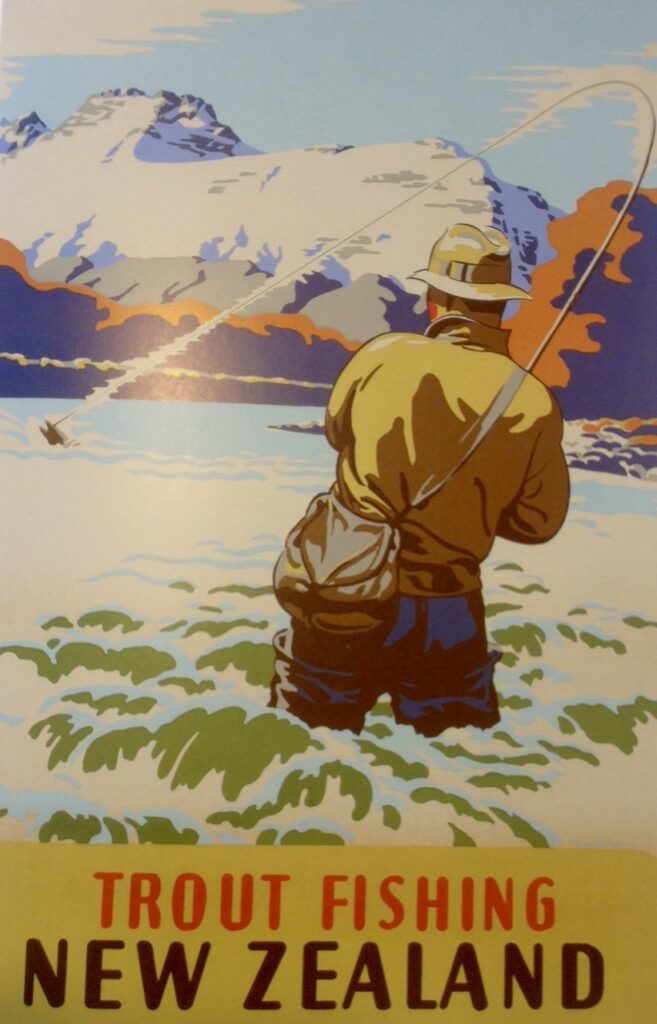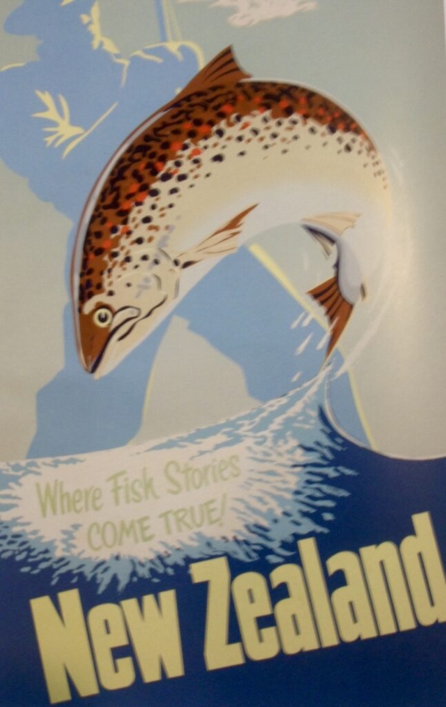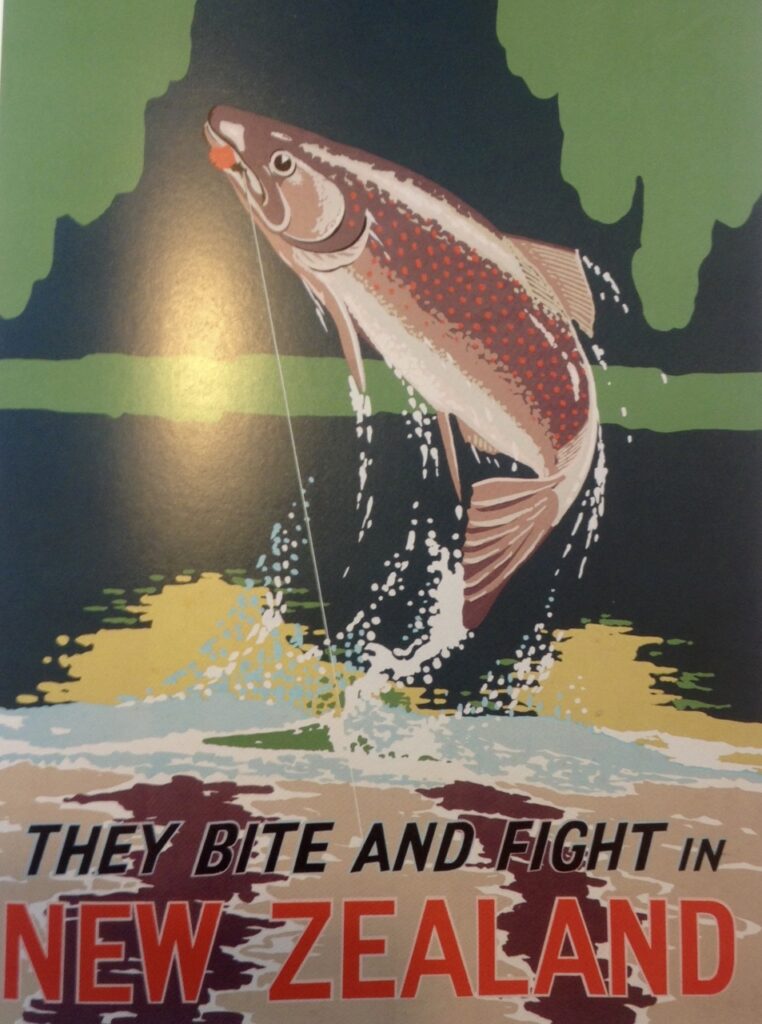 These publicity posters were displayed at the highest-traffic locations, such as railway stations, showing how previous Governments recognised the importance of trout fishing for tourism to promote NZ’s 100% pure rivers and trout fishing… through the old Tourism Department until the 1960’s. Since then, in the Taupo region, promotional activities have been delegated to DOC, the fishery managers, and local councils, and have been neglected. What a surprise!