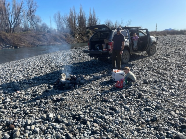 I like this for positive thinking. Dad below having a picnic with the kids has his priorities sorted. He has the fire going waiting for the angler (above) to return with lunch to grill. They do not get any fresher than that!