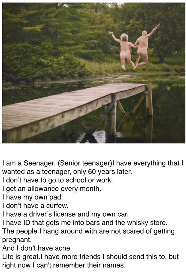 July 27, 2018 SWMBO the Seenager? We loved SWMBO’s image – sent in by an inmate (Jacko) who dared Her to post it… All senior TRM inmates can associate with the comments… At Her vintage it is all about maintaining a relentlessly positive attitude.