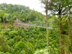 The Timber Trail, on Te Haerenga, the New Zealand Cycleway, is an 84 km, 2 day mountain bike ride that, after three years, is already attracting over 8000 riders per year to Pureora Forest Park, in the central North Island.  The Trail opened in 2013, at a cost of $5 million. It includes several specially built pedestrian and cycle swing bridges spanning spectacular gorges, including New Zealand’s longest at 141m.