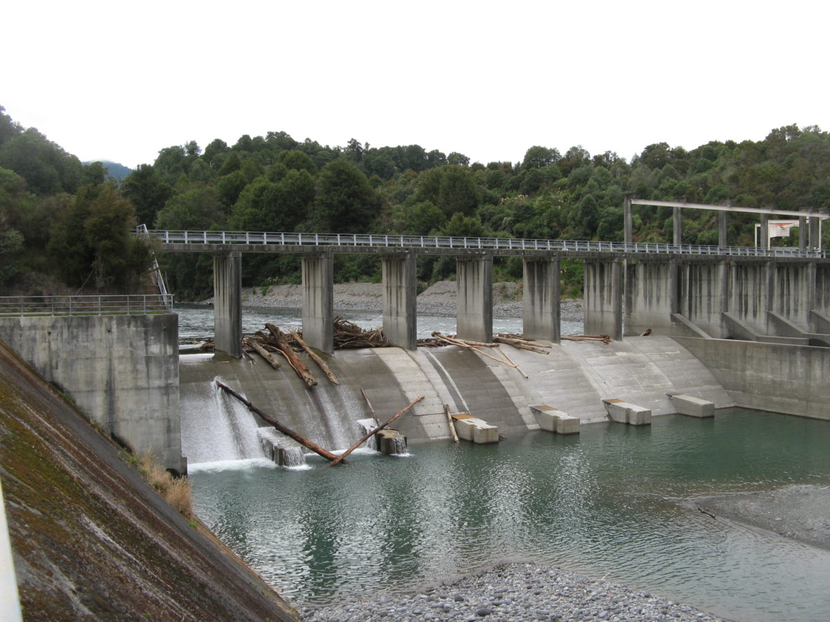 Then a scenic feature of the ride is through some spectacular mature native bush providing a canopy over unsealed roads past remote DOC camping grounds (with covered rest/drink stops) where tramping tracks (Umukarikari and Urchins Tracks) lead into the Kaimanawas, eventually emerging from the bush trail onto the Poutu Dam (below) and across the Tongariro River.
