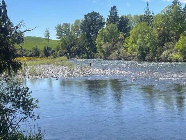 Considering the late time in the season at the end of October, in the tail of Major Jones Pool we were delighted by the numbers of fresh run trout on their spawning migration. I needed to check it out for the “Reel Recovery” team that has booked out TRM this week. The top of the Island Pool offers easy parking behind Taupahi Reserve close to access and easy wading across the bypass to get on to these runs.