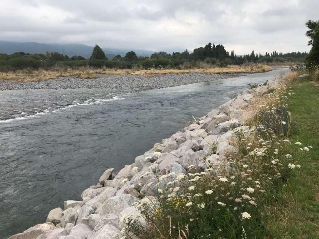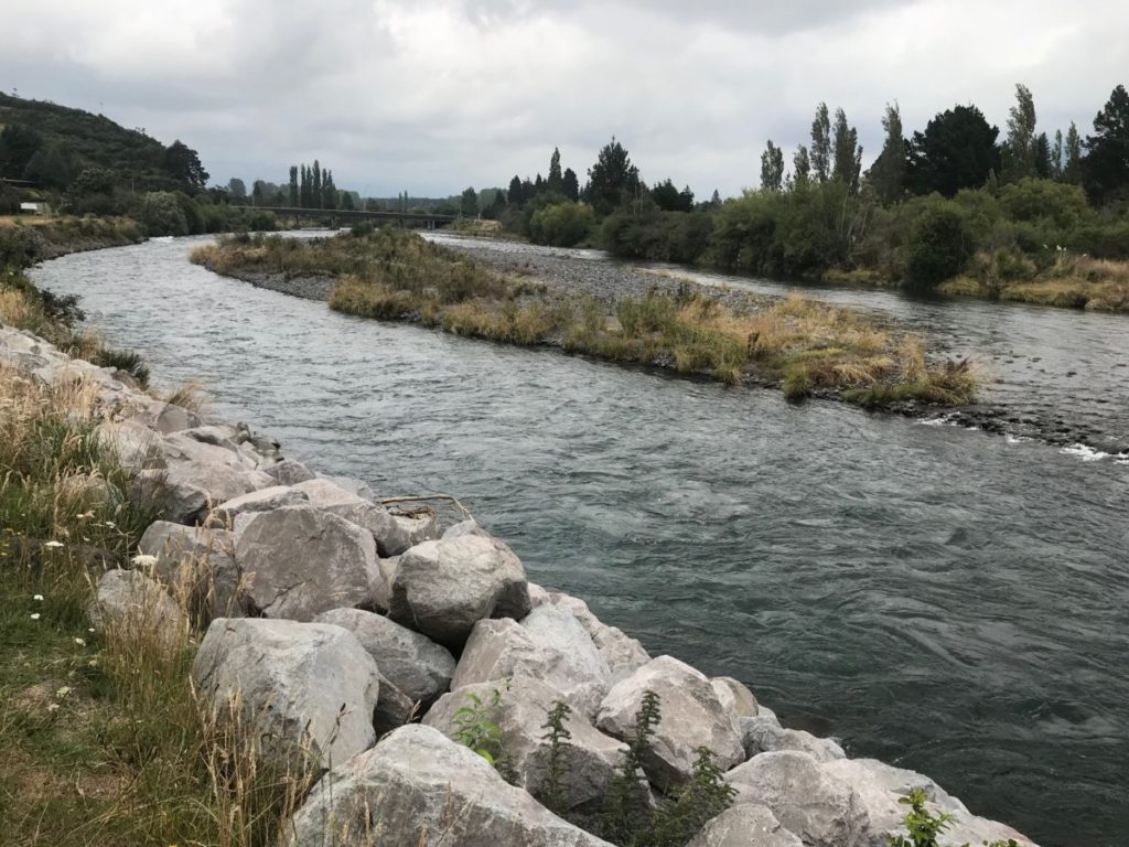 View below looking up river towards the SH1 road bridge is the same as before the flood.