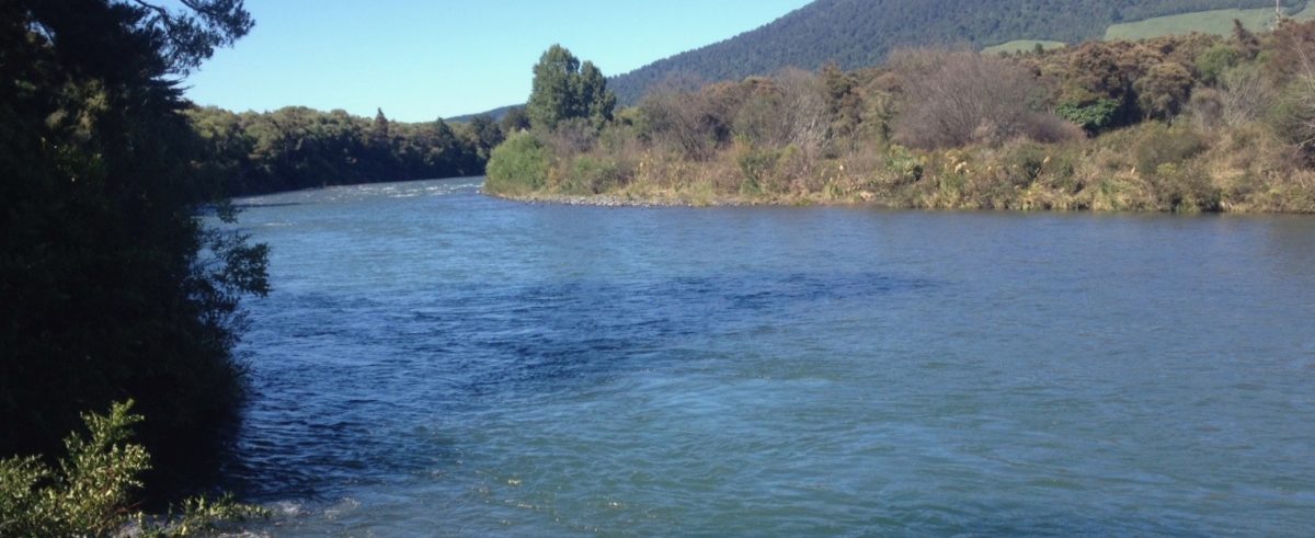 Above is the usual wonderful view from the Tongariro River road bridge (SH1) looking down river over the Bridge Pool towards the Braids where the Swirl Pool used to be.