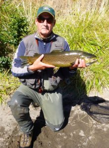 Every Summer after a fresh when there is more colour in the water we always see big browns quietly sneaking up the Tongariro hugging close to the banks out of the main current. Scott decided to target these last night and hooked his in the image above about 7 pm last night behind other anglers lined up at the Bridge Pool in about 2 feet (50cm) of quiet water. Very smart.