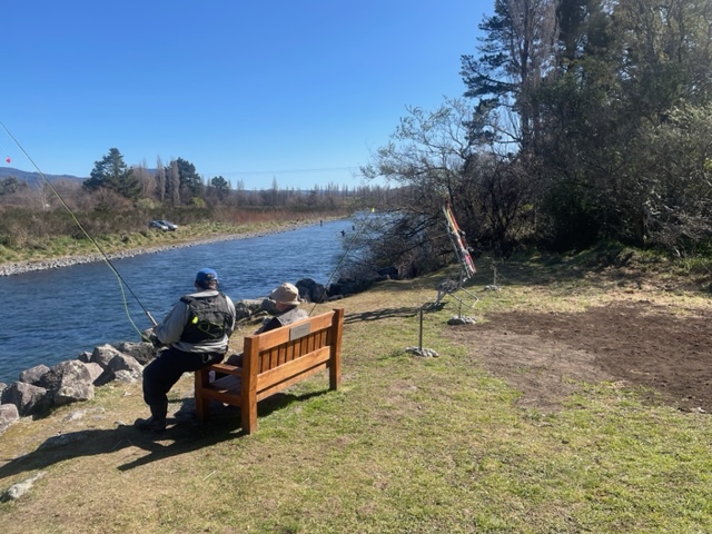 The photo of two fishos, Paddy Walsh and local John Lunt, on the TLB Lower Bridge Pool, (vehicle access off Te Rewha Crescent) confirms the main river is far more productive. John Lunt who featured as the pin-up inmate on the Bucket List map, exploited his obvious advantage by wearing his lucky TRM hat. He proved it too, hooking up and landing a feisty Rainbow while we watched.