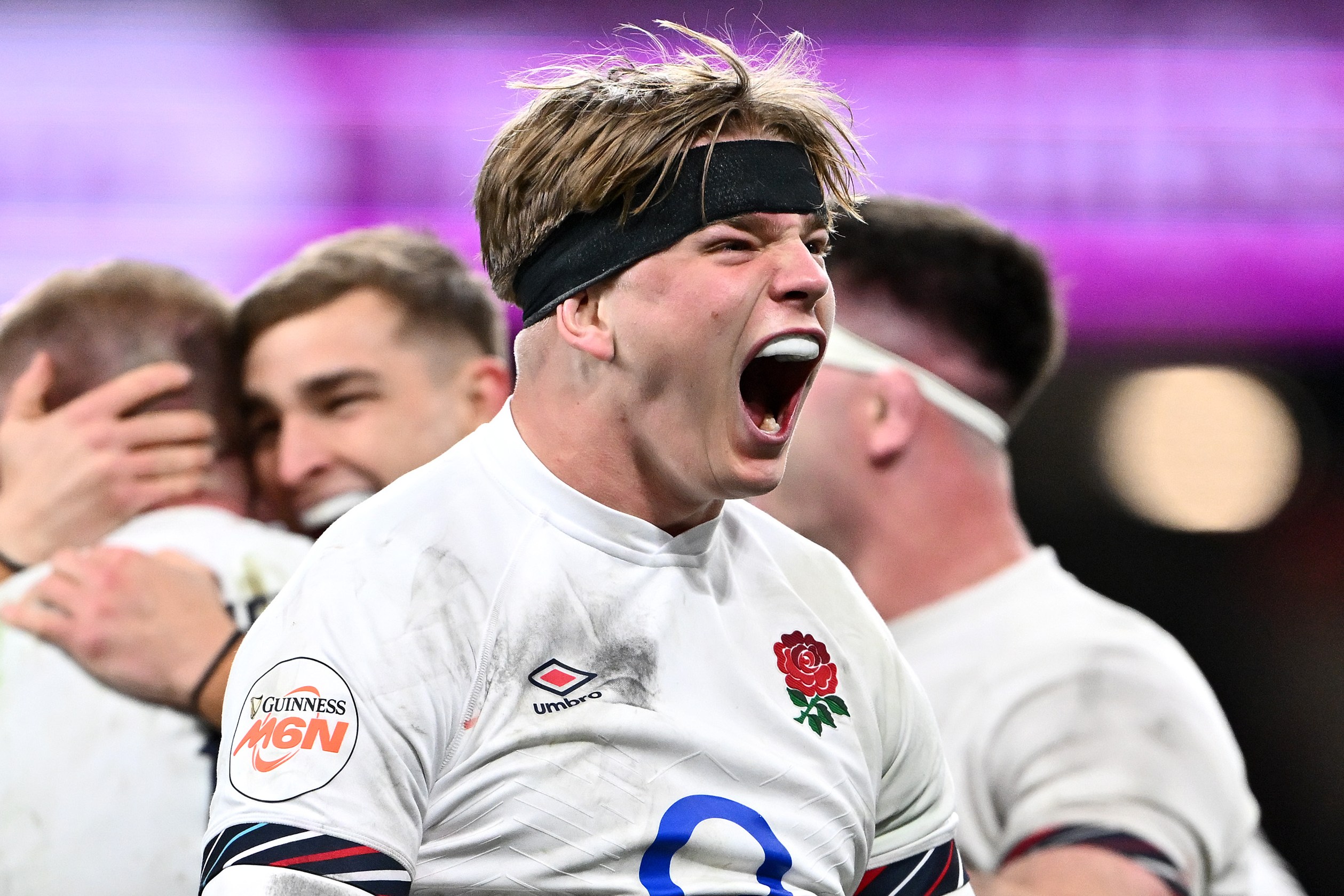 (Tom Roebuck scores England’s fourth try that confirmed their victory. Photograph: Tom Jenkins/The Guardian)