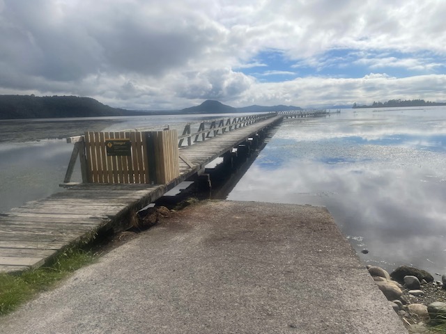 Tokaanu Wharf is now blocked off from the public. It is still mentioned in most of the publicity brochures of “what to do in Turangi” as suitable for a pleasant stroll. Sadly no more… Only seagulls are permitted.