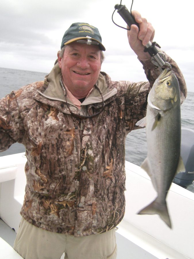 Below Jim Rowland confirming “lucky” hats even work in the sea with 5 pound Blue Fish.