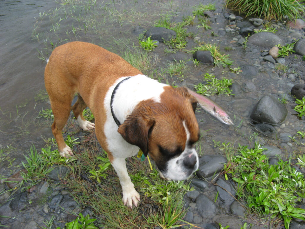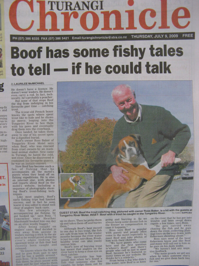 He enjoys splashing about in the Tongariro chasing imaginary trout. It will be interesting to see if he ever develops his hunting instincts and catches any – like Boof used to.