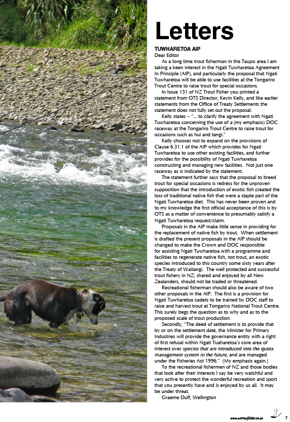 Anyone concerned with trout fishing and in particular following the unfortunate trout farming decision at the Tongariro Trout Centre should subscribe to the Troutfisher magazine.