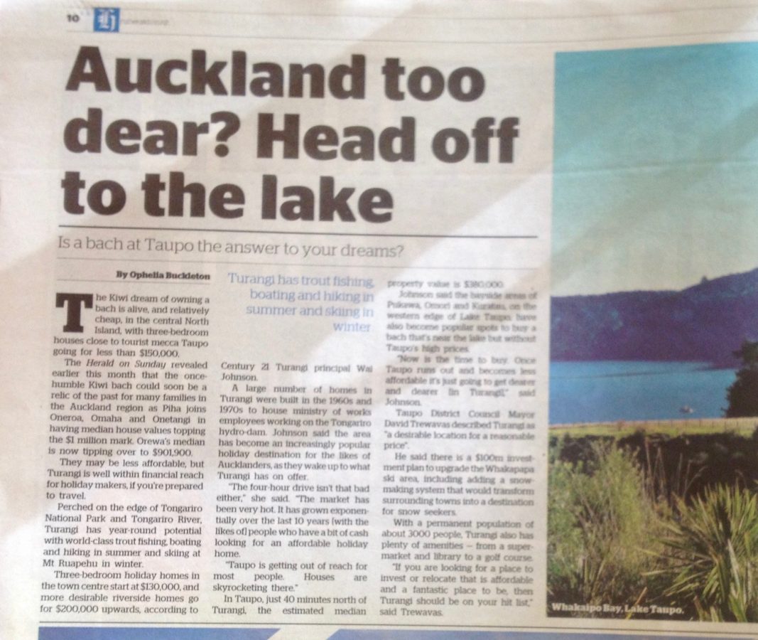 What the article does not say and what Aucklanders cannot believe is that Turangi property prices are still about 20% below the peak in 2007 – over ten years ago. Unbelievable compared to nearly every other town in NZ. But, according to SWMBO, (She Who Must Be Obeyed manages everything at TRM) that is all about to change…