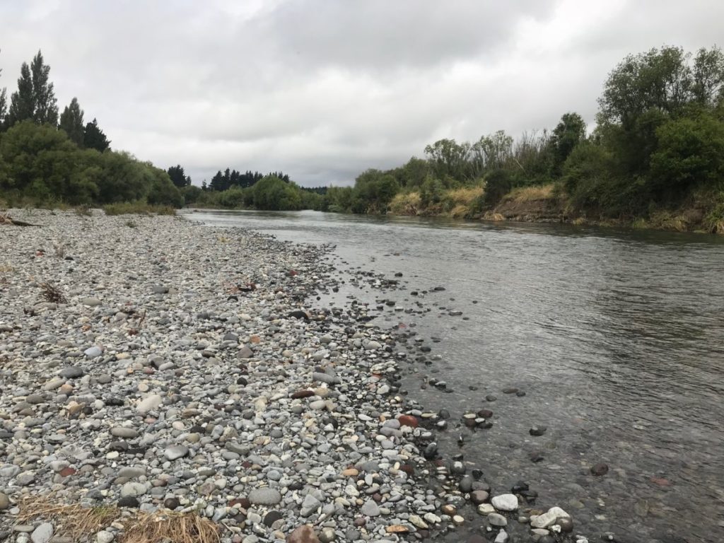 At the time of inspection of the lower river above it was still looking mean as, flowing above 40 cumecs, so it was difficult to assess much of the river for wading, etc.  With all the shingle cleaned and polished by the flood the wading is much easier – less slippery.