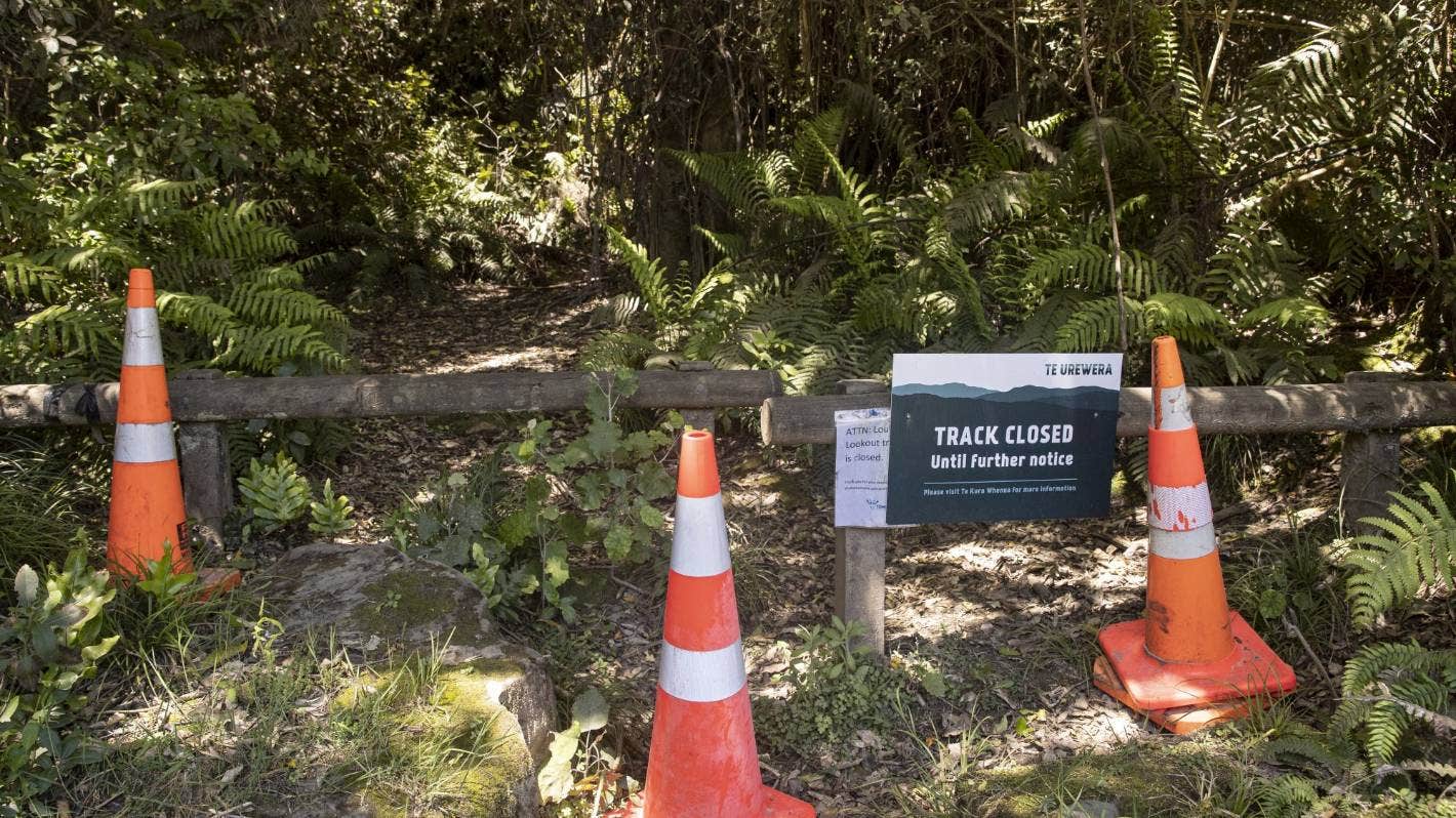 Nearby, a sign at an entrance to the Great Walk advises that the whole of Te Urewera is closed at Covid alert level two.