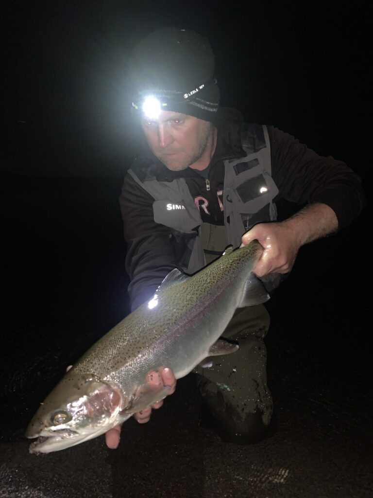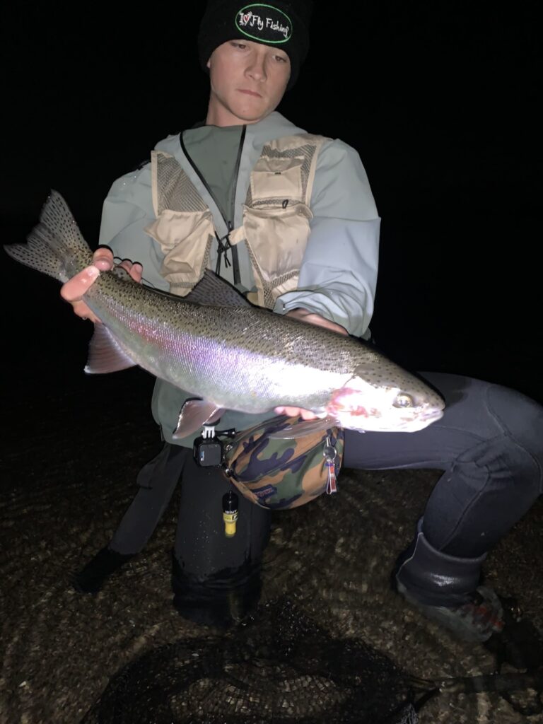 Hi Ross. Please find attached photos of rainbow and brown taken in the Western Bays – all around 6lb. We landed a personal record of 43 fish between the two of us, between 8:30 and midnight. It was unlike anything I’ve ever seen there. A literal swarm of fish rising.