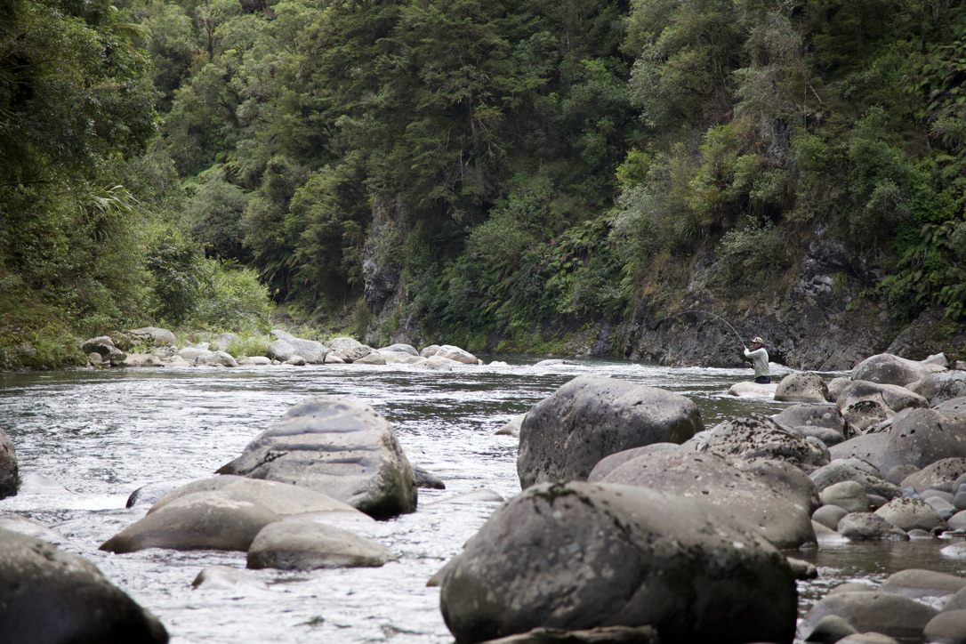 The superb RNZ guide was Jesse who fulfilled everything asked of him technically – according to their feedback. He did warn that this raft fishing trip may not be suitable for older Tongariro duffers (like me?) as it is physically demanding and requires a higher casting skill level than usually seen on the Tongariro. In particular, the big slippery volcanic boulders covered in grease means extremely difficult wading conditions. So you have been warned.