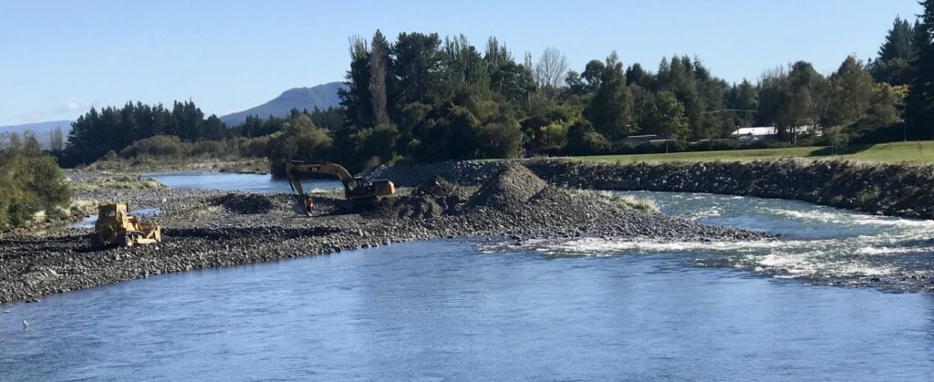 The older 2018 photos are interesting to illustrate WRC (Waikato Regional Council) contractors landscaping the river bed to shift the current more over to the TLB away from the Herekiekie Street, claimed to be flood protection works, may have been part of the previous problem.
